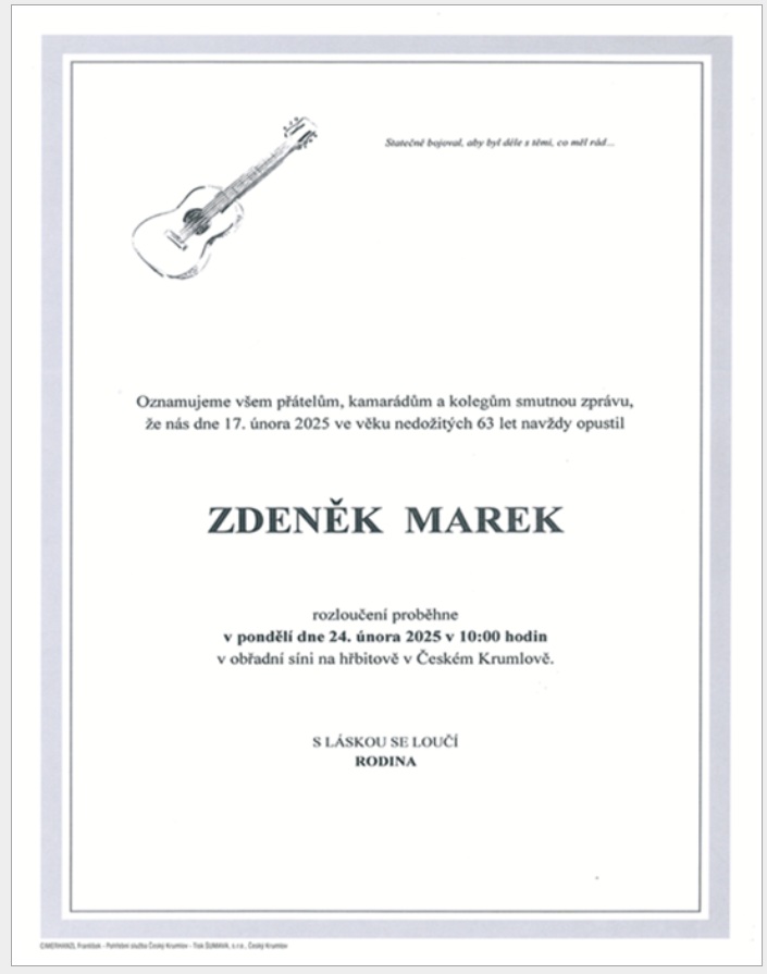 S hlubokým zármutkem oznamujeme, že dne 17. února 2025 nás navždy opustil rtn. Mgr. Zdeněk Marek (6. dubna 1962).